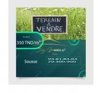 Terrain à vendre dans un lotissement approuvé, Au calme à entre zeouia et cité riadh, titré, d'une superficie : 4404 m² . Prix : 350 TND/ M² . A VOIR ! * Visite : gratuite Pour plus des renseignements , vous pouvez nous contacter sur les : Wajdi Souayah 94 81 84 84 // Mlle Eslem 53 66 99 16 ou Mr Brahim 29 300 900 // Email : bigimmotunisia@gmail.com Ou Soyez les bienvenus chers clients à notre agence : Siege : Big Immo Tunisia, Khezama Ouest , Rue Hassan Ben Said Sousse, près de librairie SIAB 4051 Sousse. Votre confiance est notre réussite !