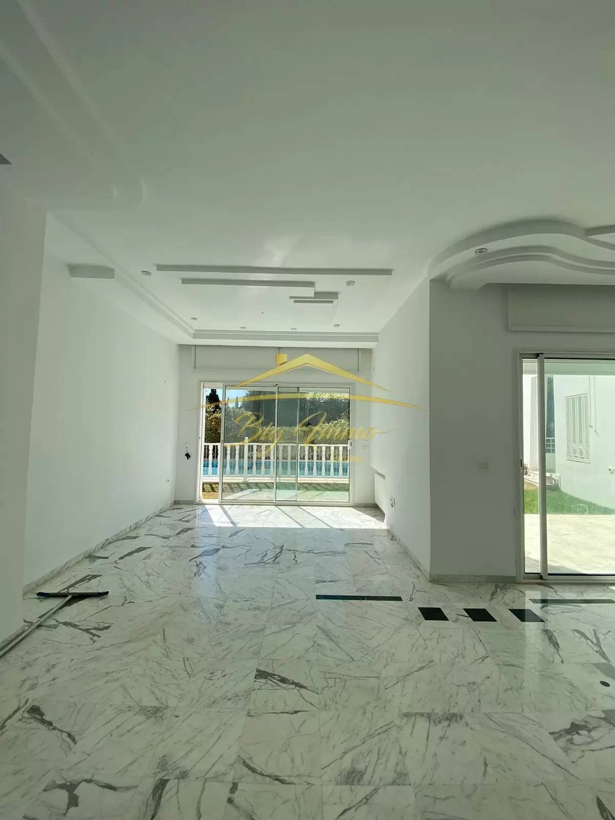 Villa de Prestige avec Vue Golf, Piscine et Espaces de Vie Élégants Nichée dans un cadre verdoyant avec une vue imprenable sur le golf, cette somptueuse villa de trois niveaux allie confort moderne, volumes généreux et prestations de qualité. Chaque espace a été pensé pour offrir à ses occupants un cadre de vie paisible, fonctionnel et raffiné. Sous-sol : Espace indépendant et fonctionnel Le sous-sol accueille une cuisine de service, un salon secondaire, deux chambres parfaites pour le personnel ou les invités, une salle de bain, ainsi qu’un garage privé. Un espace parfaitement autonome, pratique pour les besoins quotidiens ou les séjours prolongés. Rez-de-chaussée : Confort et convivialité L’entrée s’ouvre sur un vaste salon lumineux aux grandes baies vitrées, un séjour accueillant, et une salle à manger conviviale. La cuisine principale, entièrement équipée, s'accompagne d’une salle d’eau pour les invités. Une suite lumineuse, avec dressing et salle de bain privative, complète ce niveau, idéale pour recevoir ou pour un usage quotidien sans avoir à monter à l'étage. 1er étage : Espace nuit privilégié À l’étage, deux chambres spacieuses avec dressings se partagent une salle de bain moderne, tandis que la suite parentale dispose de son propre dressing et d'une salle de bain privative, offrant un véritable cocon de tranquillité. Toutes les chambres bénéficient d'une vue dégagée sur la piscine, créant une atmosphère paisible et relaxante. Extérieurs : Détente, vue et équipements À l’extérieur, un grand jardin paysager s'étend avec une vue magnifique sur le golf, offrant un cadre idéal pour la détente et les réceptions. La piscine privative s’intègre harmonieusement dans l’environnement naturel de la villa. Un sondage ainsi qu’un réservoir d’eau de pluie permettent une gestion optimale des ressources, ajoutant un atout écologique et économique. N’hésitez pas à nous contacter pour plus d’informations ou pour organiser une visite : 23 001 122 / 94 918 484