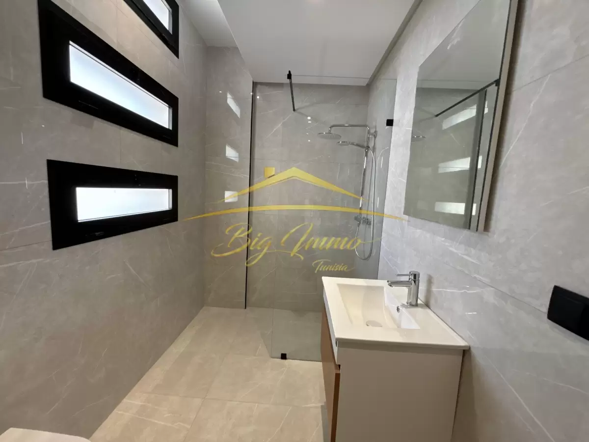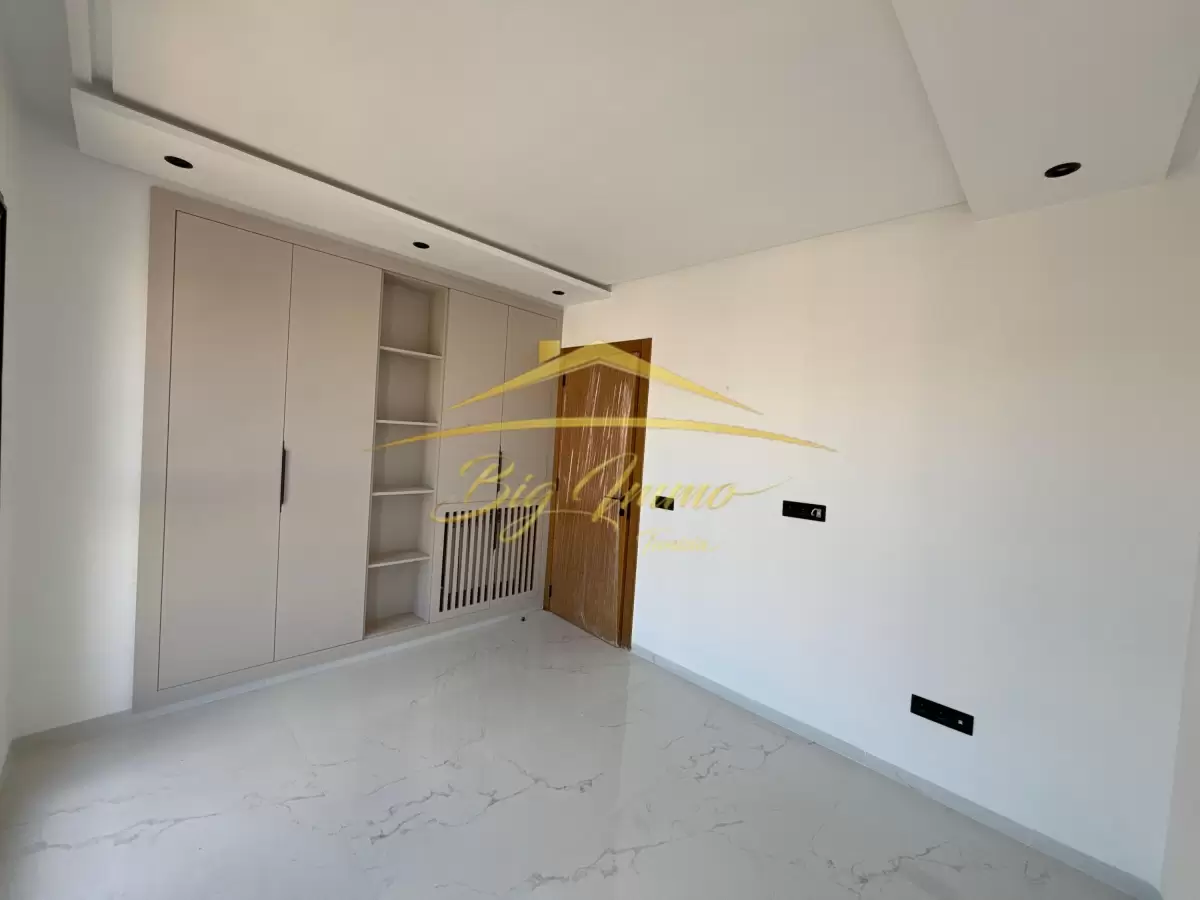 À Vendre – Appartement S2 Neuf à Bouhssina (Haut Standing) Emplacement : Bouhssina, 4ᵉ étage, dans une résidence neuve et sécurisée Appartement jamais habité, tout neuf, offrant des prestations de qualité supérieure. Caractéristiques du bien : Superficie : 133 m², spacieux et bien agencé Cuisine : Entièrement séparée, moderne et fonctionnelle Chambres : 2 grandes chambres, dont une suite avec salle de bain privative (cabine de douche) et dressing Salle de bain : Moderne, équipée d'une cabine de douche, dans la suite Salon : Salon lumineux avec grandes fenêtres et accès à un balcon, offrant une belle vue sur le quartier Balcon : Idéal pour profiter de l'extérieur, petit espace privé pour se détendre Détails supplémentaires : Étage : 4ᵉ étage (idéal pour la vue et la tranquillité) Prix : 426 000 DT Disponibilité immédiate pour emménager ou investir Proximité : Près des commerces, écoles et transports en commun, facilitant la vie quotidienne Opportunité à ne pas manquer, pour un logement familial ou un investissement de qualité avec un potentiel de rentabilité élevé. Pour plus d'informations ou pour organiser une visite, contactez-nous : 258 852 85 230 011 22