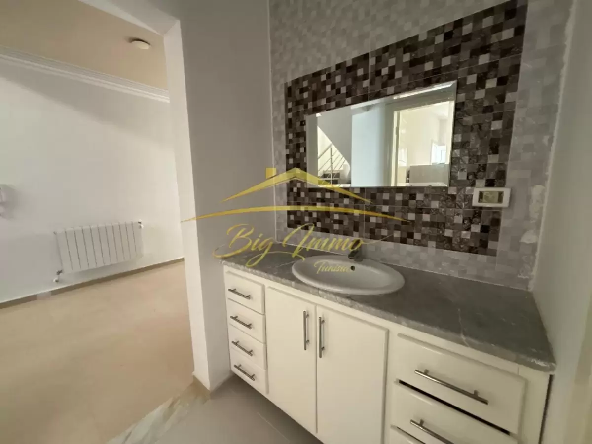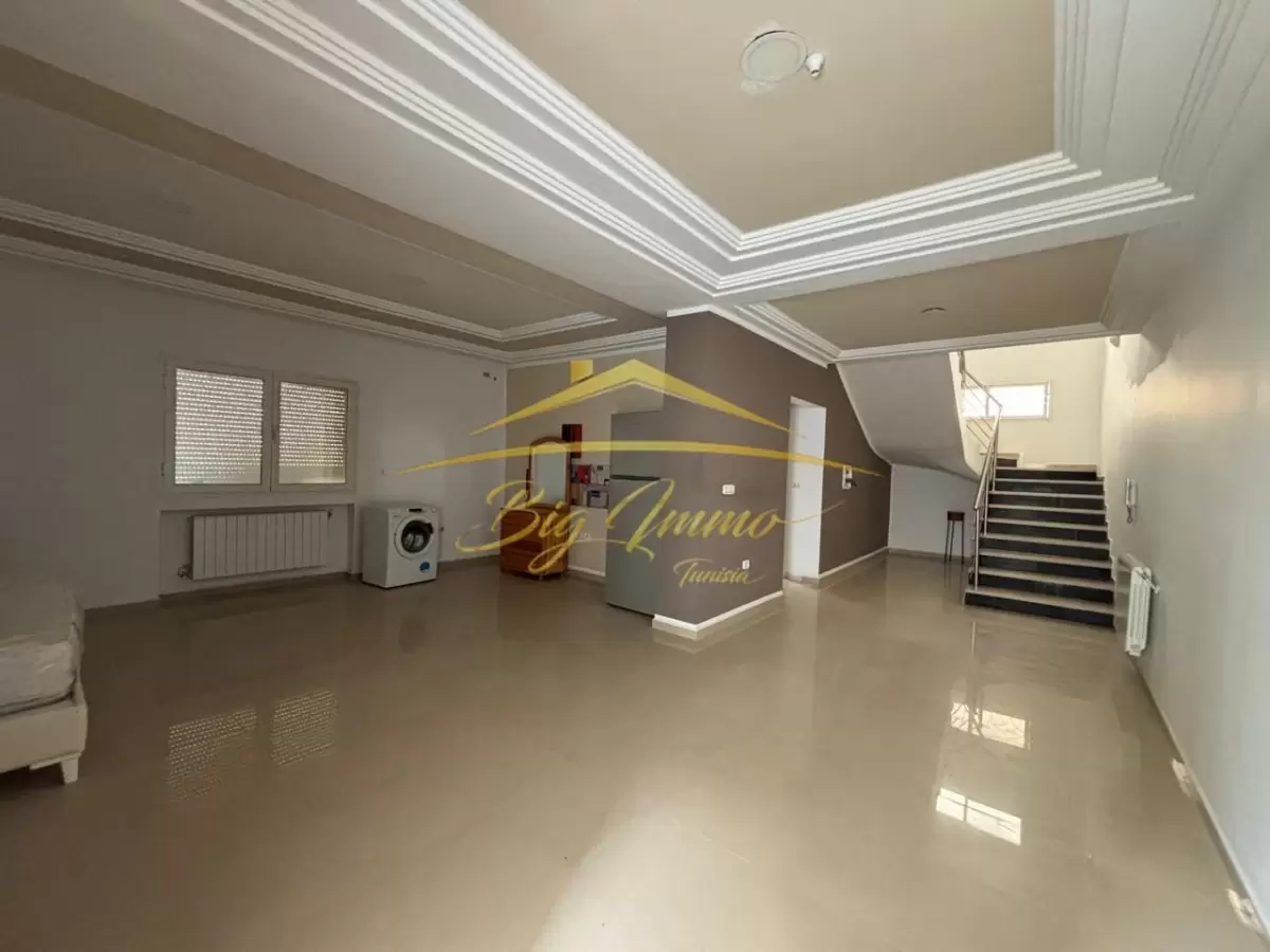 À vendre : Triplex S+4 à Sahloul 4 Superficie : 300 m² couverts sur un terrain titré de 220 m² Composition : Entrée / garage : Entrée pour 2 voitures + garage fermé RDC : Salon spacieux, salle de bain avec douche, lavabo séparé, cuisine avec accès à la terrasse 1er étage : 3 chambres à coucher dont 2 avec accès au balcon, salle de bain avec baignoire et WC 2ᵉ étage : Chambre spacieuse et terrasse Triplex lumineux, bien agencé et idéal pour une famille. Pour visiter, appelez-nous : 25 885 285 – 29 300 900 Agence Immobilière Big Immo Avenue Hassan Ben Said, Khzema Ouest, Sousse – Rond-point Siab