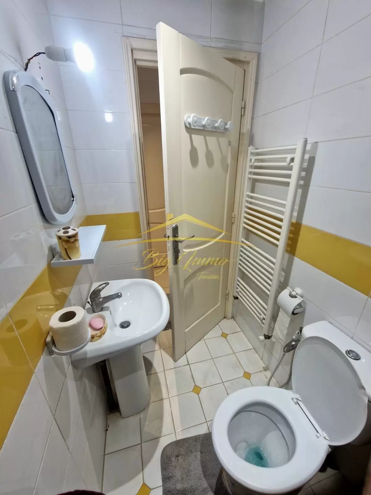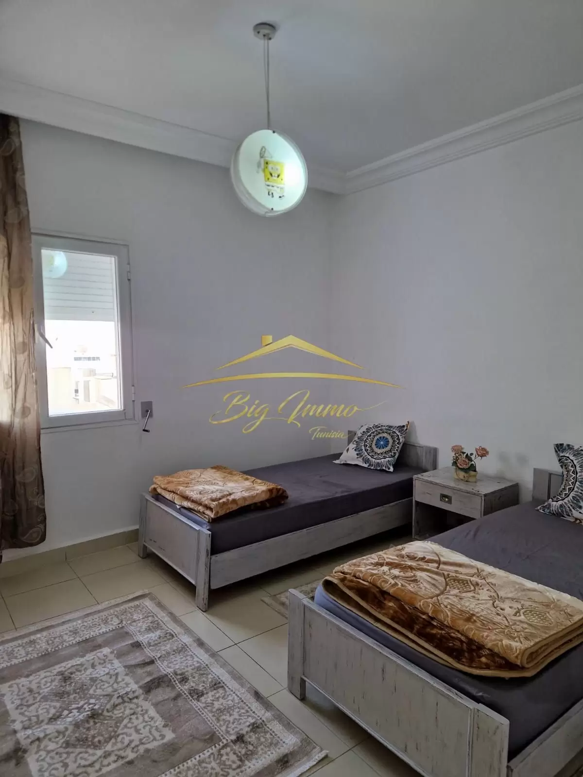 À louer – Appartement S+2 meublé à Hammam Sousse À louer un appartement S+2 meublé, situé au 3ᵉ étage sans ascenseur, dans un petit immeuble calme à Hammam Sousse. Composition : Une chambre parentale Une chambre avec deux lits Un salon et une salle à manger Une cuisine équipée avec accès au séchoir Une salle de bain avec douche Chauffage central dans tout l’appartement Atouts : Proche de toutes les commodités Quartier sécurisé Pour une visite ou plus d’informations : 25 885 285 / 53 669 916 Agence Immobilière Big Immo Tunisia