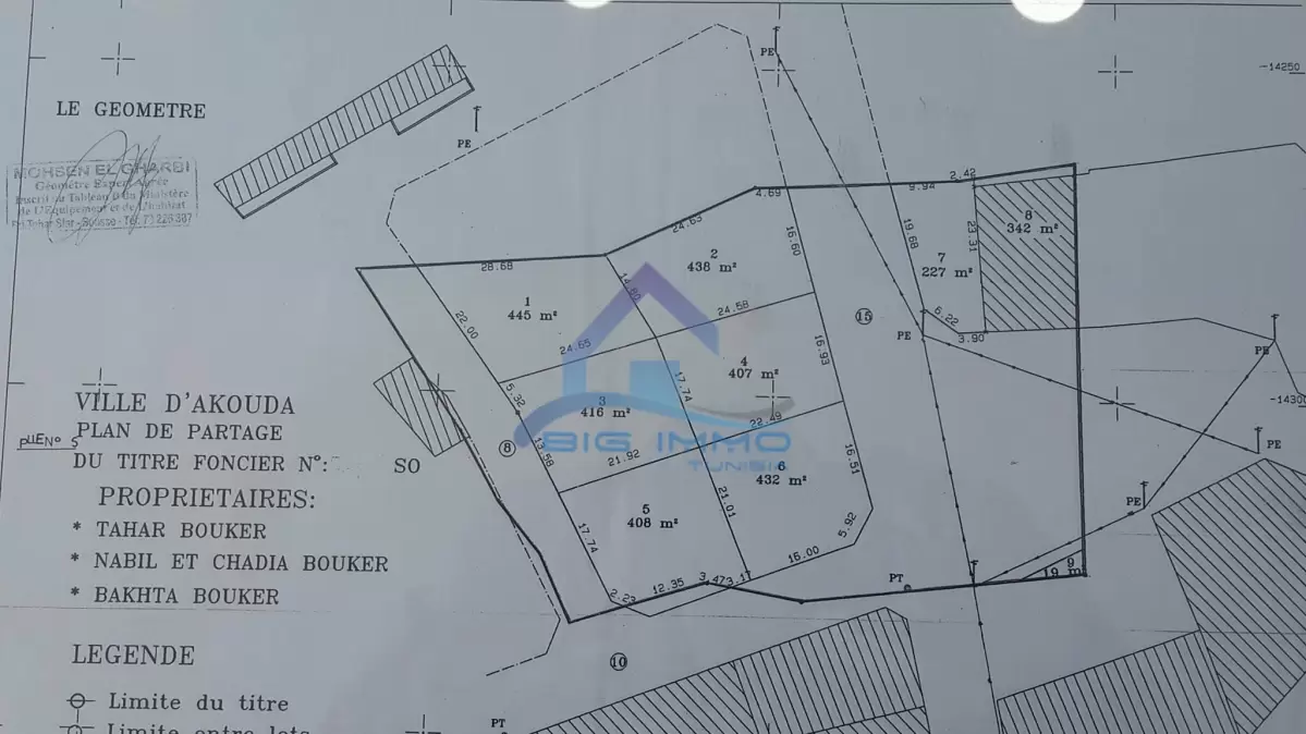 L 'Agence BIG IMMO met eni vente 7 lots ( 455 m² ,416 m²,408 m²,432 m², 407 m², 438 m², 227 m²) de Terrain à l'entree de Akouda a 270 dt /m². Pour visite et plus d'informations N'hésitez pas à nous contacter : ☎ 29 300 900 ☎ 94 818 484 ☎ 73 270 430.