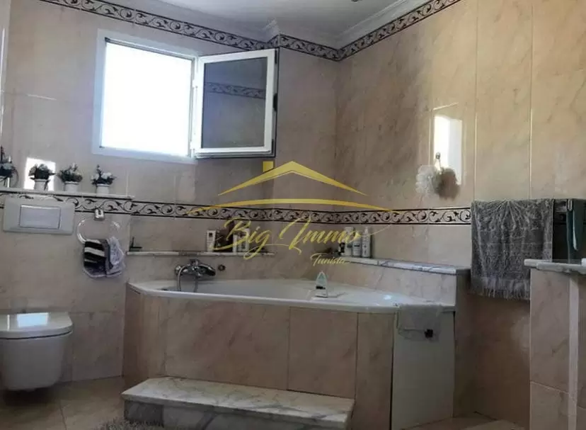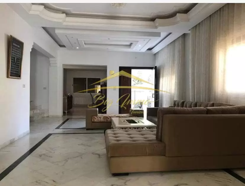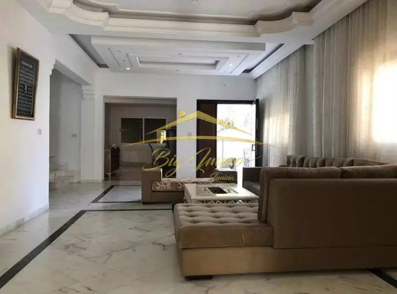 Nouveauté Idéal Rare sur le marché, Big immo tunisia vous propose cette belle Villa de 400m² terrain et 520 m² Couvert, avec la vocation de R+2 . Splendide villa de 07 pièces bien entretenue, érigée sur 03 niveaux Cave composé avec une cuisine équipée, Réez de chassée et 1ére étage. Le bien est composé de 04 salons, 01 suite parentale et 03 chambres, une terrasse, 03 salles de bain avec baignoire "jacuzzi" et douche, un WC séparé. Caractéristiques supplémentaires - Grand Séjour -dressing -BBQ viennent compléter ce bien -Extérieur - Garages pour 06 voitures -Très belles prestations -beaux volumes -système d'alarme - titré - 06 caméras de surveillances -constructions en pierres-Située proche de commerce et commodités. Prix : 1.150.000 TND.