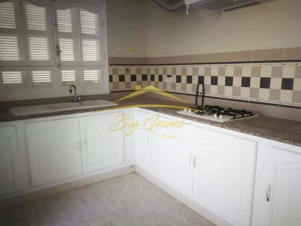 A quelques pas de la Marina kantaoui et de ses commerces, Charmant Etage d'environ 130M² Comprenant : vaste Salon, cuisine équipée, 03 chambres à coucher, un balcon dans chaque pièce, salle de bain et dressing. IDEALEMENT PLACE. Prix : 1000 TND /Mois.