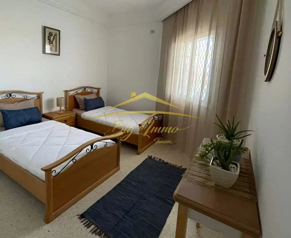 Cette villa, située Après le mall, est idéale pour 10 personnes. Vous aurez à votre disposition 4 chambres, une terrasse aménagée et une connexion WiFi. Son salon offre un cadre parfait pour se détendre après une journée passée au soleil. Installez-vous dans le canapé pour lire un bon livre ou profitez des équipements mis à votre disposition, comme une connexion Wi-Fi, et vous trouvez aussi (Barbecue, panneau basquette mural, une activité agricole dans le jardin (arbres, plantes)). La villa possède 4 chambres confortables, 1 avec un lit double ainsi qu'une salle de bain privative contenant une douche , 3 chambres avec 08 lit simple. Salles de bains séparées sont à votre disposition équipées d'une douche et de toilettes Informations sur la propriété Cette villa bénéficie d'un emplacement privilégié, qui vous permettra de profiter pleinement de votre séjour dans la région. De nombreuses activités vous attendent dans les environs, comme Quad à chot mariem , jeux Aquatiques . La plage se situe à 4 km. de la villa. * Visite Gratuite . Pour plus d'informations, veuillez contacter : Mr Wajdi Souayah 94 81 84 84 // Mlle Eslem 53669916 . Notre Adresse Email: bigimmotunisia@gmail.com. Agence Immobilière Big Immo Tunisia, Khezama Ouest , Rue Hassan Ben Said Sousse, près de librairie SIAB 4051 Sousse, Votre confiance est notre réussite !!