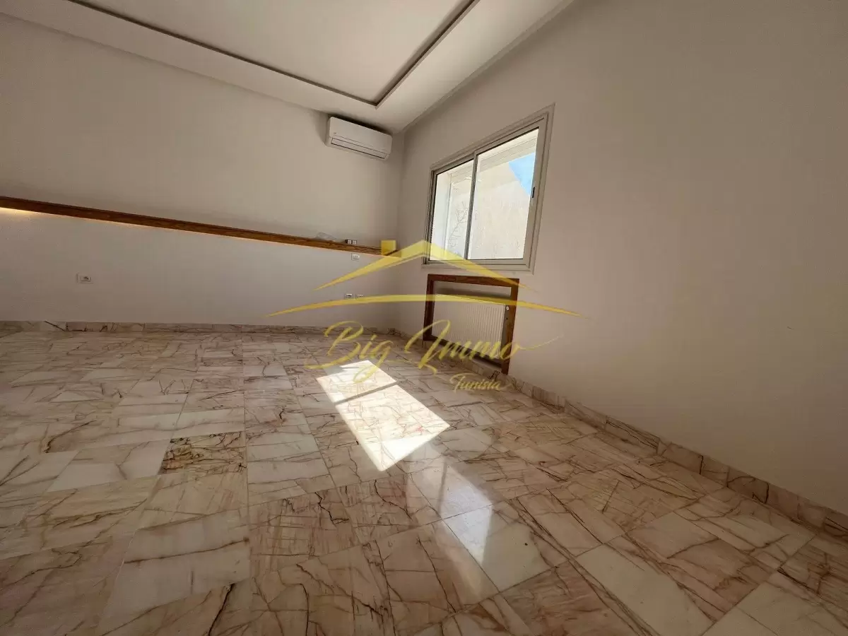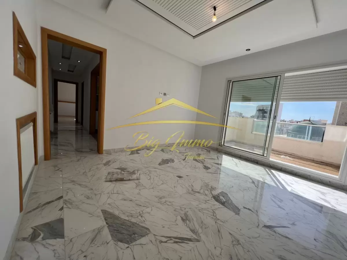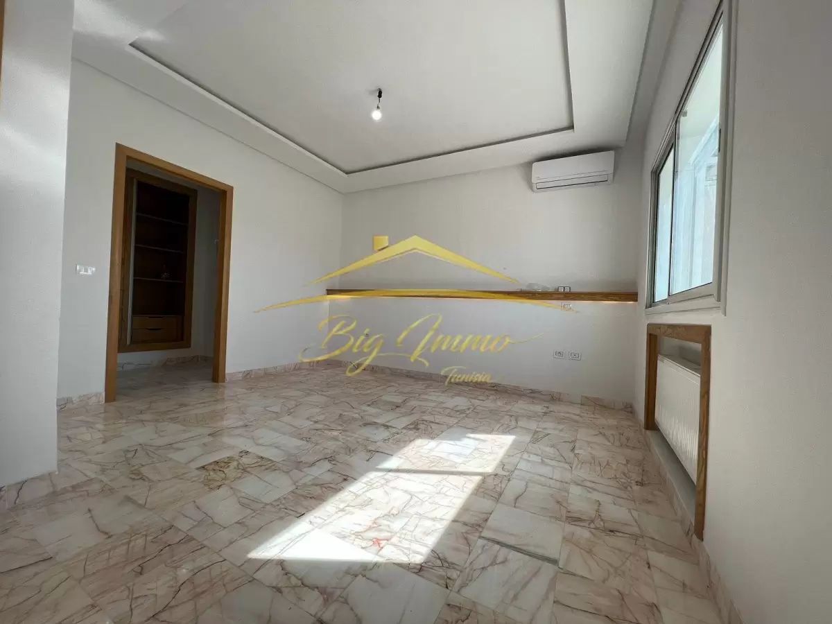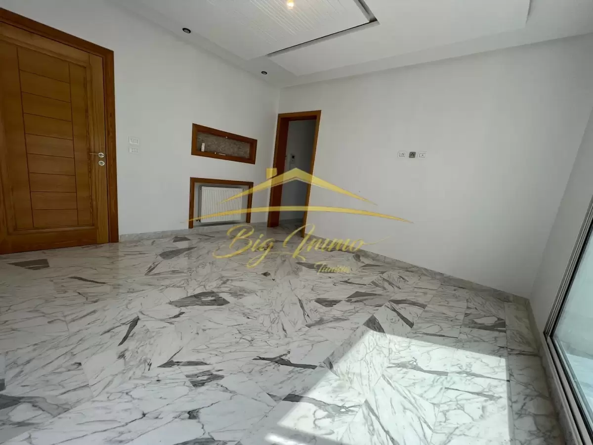 L’agence BIG IMMO met en location un Coquet appartement à Hammam Sousse dans quartier calme et prés de tous les commodités. L'appartement type S1 de haut standing, non meublé situé dans une résidence sécurisée et avec ascenseur L'appartement est d'une superficie 80m² réparti comme suite un lumineux salon qui s'ouvre sur une grande terrasse Une cuisine américaine agencée et équipée avec une plaque four et hotte une chambre avec dressing Une salle de bain avec cabine de douche.
