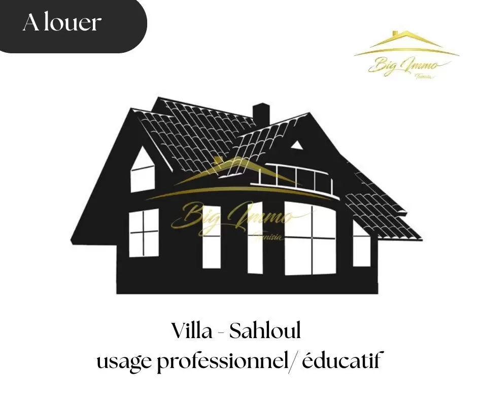 À Louer – Villa à usage professionnel ou éducatif - Sahloul Type : Villa indépendante sur 4 niveaux Usage : Professionnel, éducatif, direction de société, école privée, jardin d’enfants, cabinet Composition : 9 pièces principales 2 cuisines (dont 1 kitchenette) 2 salles de bain 3 points d’eau avec cabines 2 terrasses 1 balcon Coin salon extérieur Abri de jardin Autres atouts : Espaces extérieurs aménageables Accès facile – quartier calme Contact : 25 885 285 - 53669916