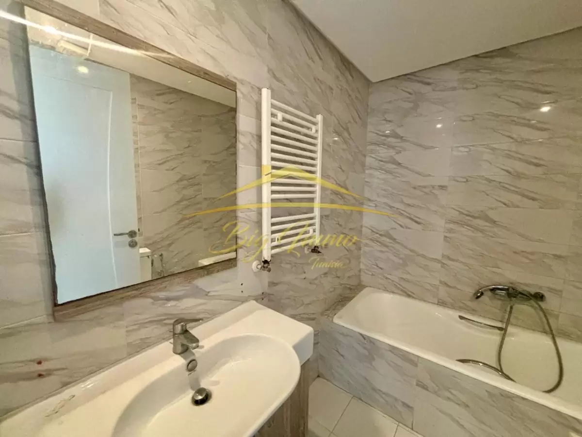 À Louer – S+2 sans meuble à Khzema Est un appartement s2 sans meuble dans une ésidence sécurisée – 3ᵉ étage (avec ascenseur) Place de parking au sous-sol Composition : Salon spacieux avec accès au balcon Cuisine équipée (plaque, hotte, four) + séchoir 2 chambres à coucher (dont une avec placard encastré) et accès balcon) Salle de bain avec baignoire Point d’eau pour invités Chauffage central Loyer : 1200 DT/mois Contact : 25 885 285 - 53 669 916