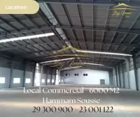 Local Commercial à Louer – Hammam Sousse Nous proposons à la location un vaste local commercial, idéal pour entrepôt, showroom, centre logistique ou activité industrielle. Caractéristiques du bien : Superficie totale : 6 000 m² Surface couverte : 3 500 m² Aménagé et cloisonné Espaces intérieurs bien répartis Facile d’accès Convient à divers types d’activités professionnelles Emplacement stratégique : Situé à Hammam Sousse, proche des commodités, des zones d’activité et des grands axes routiers. Loyer mensuel : 18 000 TND Pour plus d’informations ou pour organiser une visite, veuillez nous contacter au : 25 885 285