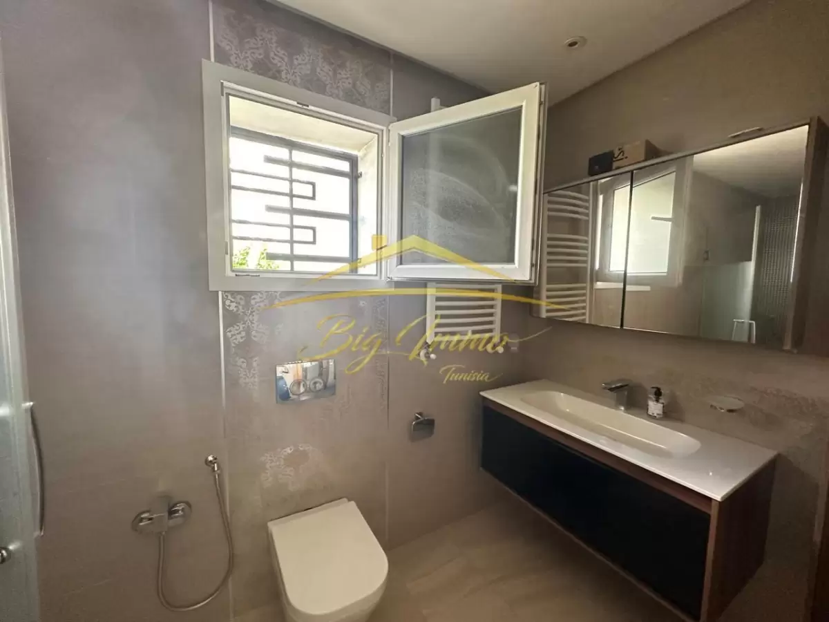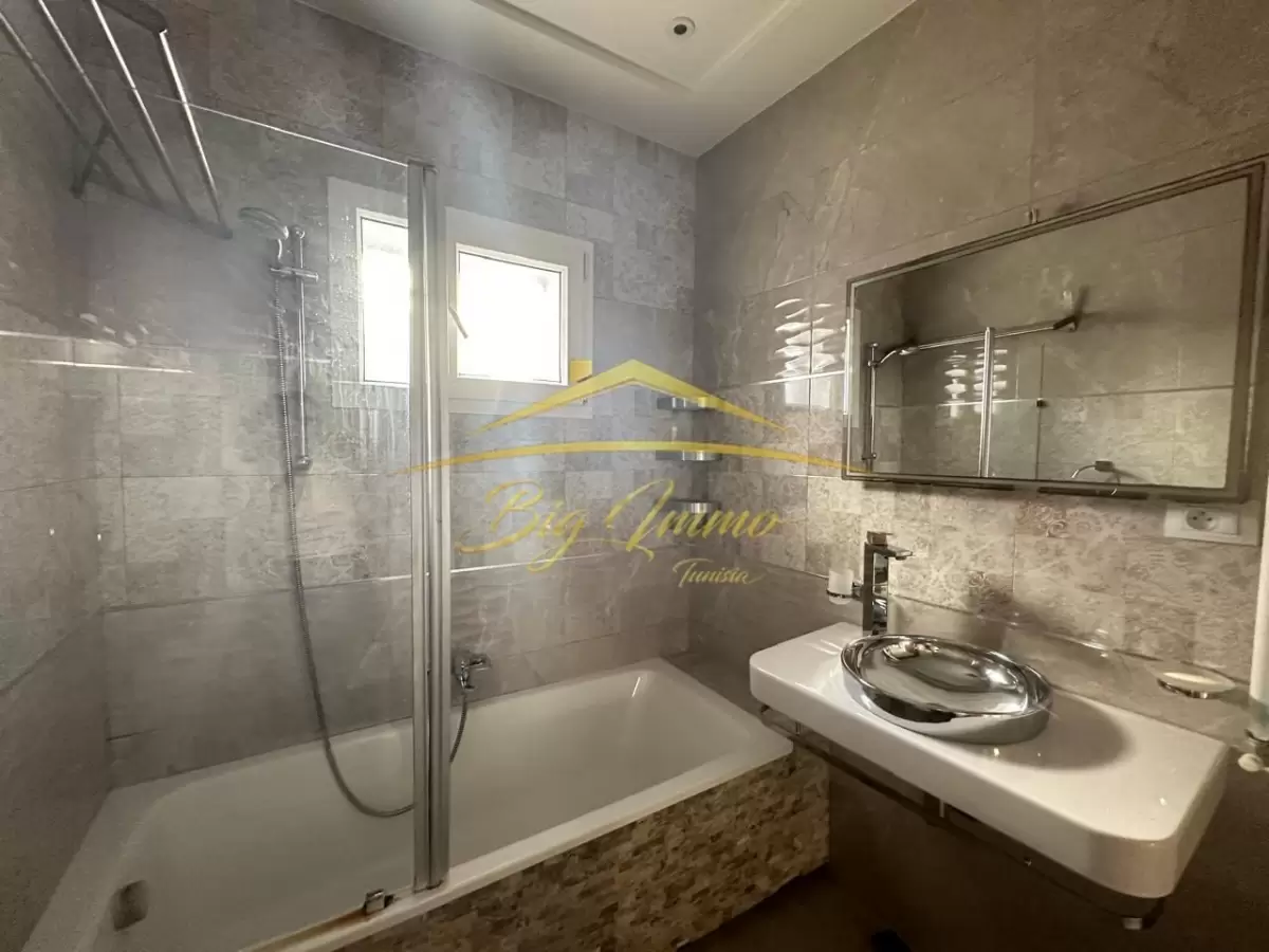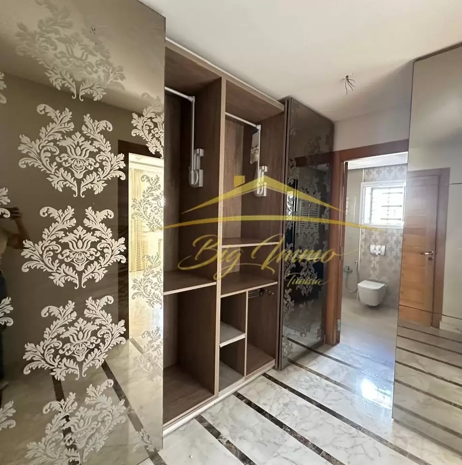À LOUER – Rez-de-chaussée de Villa Haut Standing à Sahloul Situé dans un quartier résidentiel calme, ce bien bénéficie d’une entrée totalement indépendante et d’un jardin privé. Location réservée exclusivement aux étrangers. Caractéristiques principales : Rez-de-chaussée d’une villa indépendante Entrée privée avec espace pour deux voitures Jardin privatif arboré Composition intérieure : Salon spacieux et lumineux Cuisine moderne entièrement aménagée Suite parentale comprenant : • Chambre à coucher • Chambre dressing • Salle de bain avec cabine de douche Deux chambres pour enfants Deuxième salle de bain avec baignoire Placard encastré dans le couloir Séparation bien pensée entre l’espace jour et l’espace nuit Atouts : Idéal pour un couple ou une petite famille étrangère recherchant le calme, le confort et l’indépendance. Contact : Pour plus d’informations ou pour organiser une visite privée, veuillez appeler le : 25 885 285 / 53 669 916