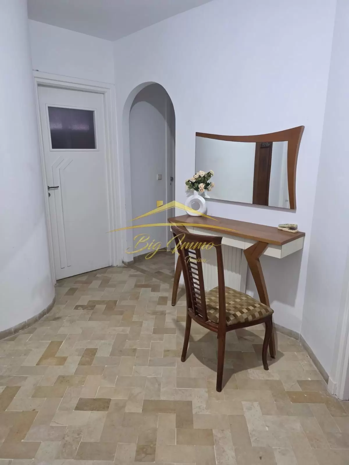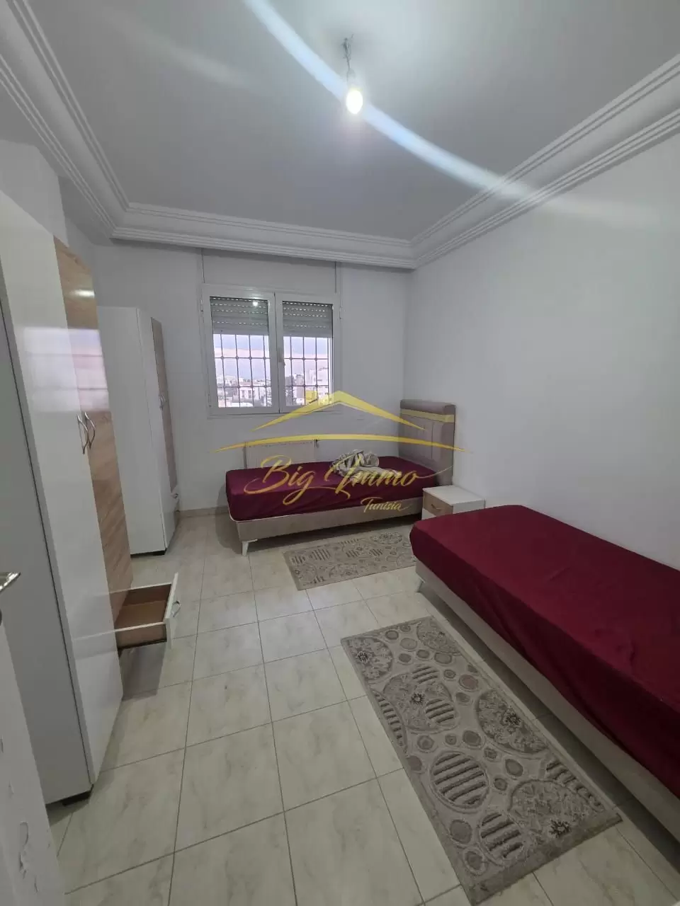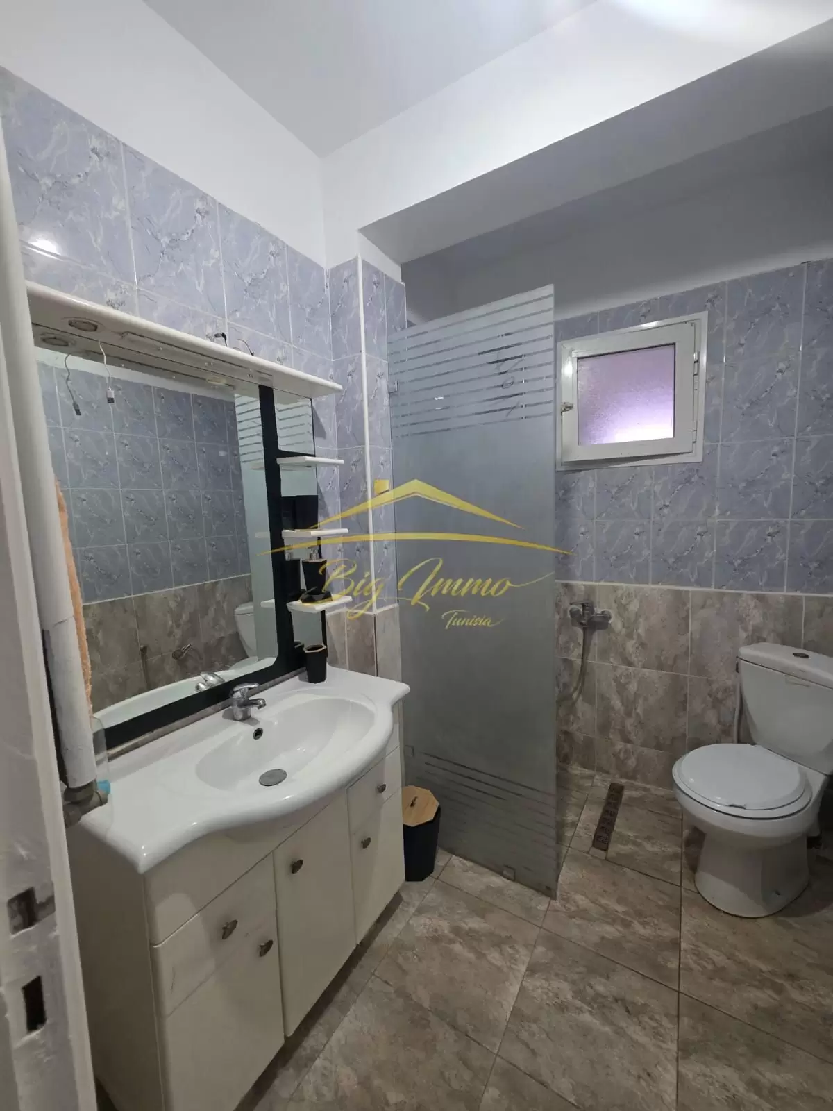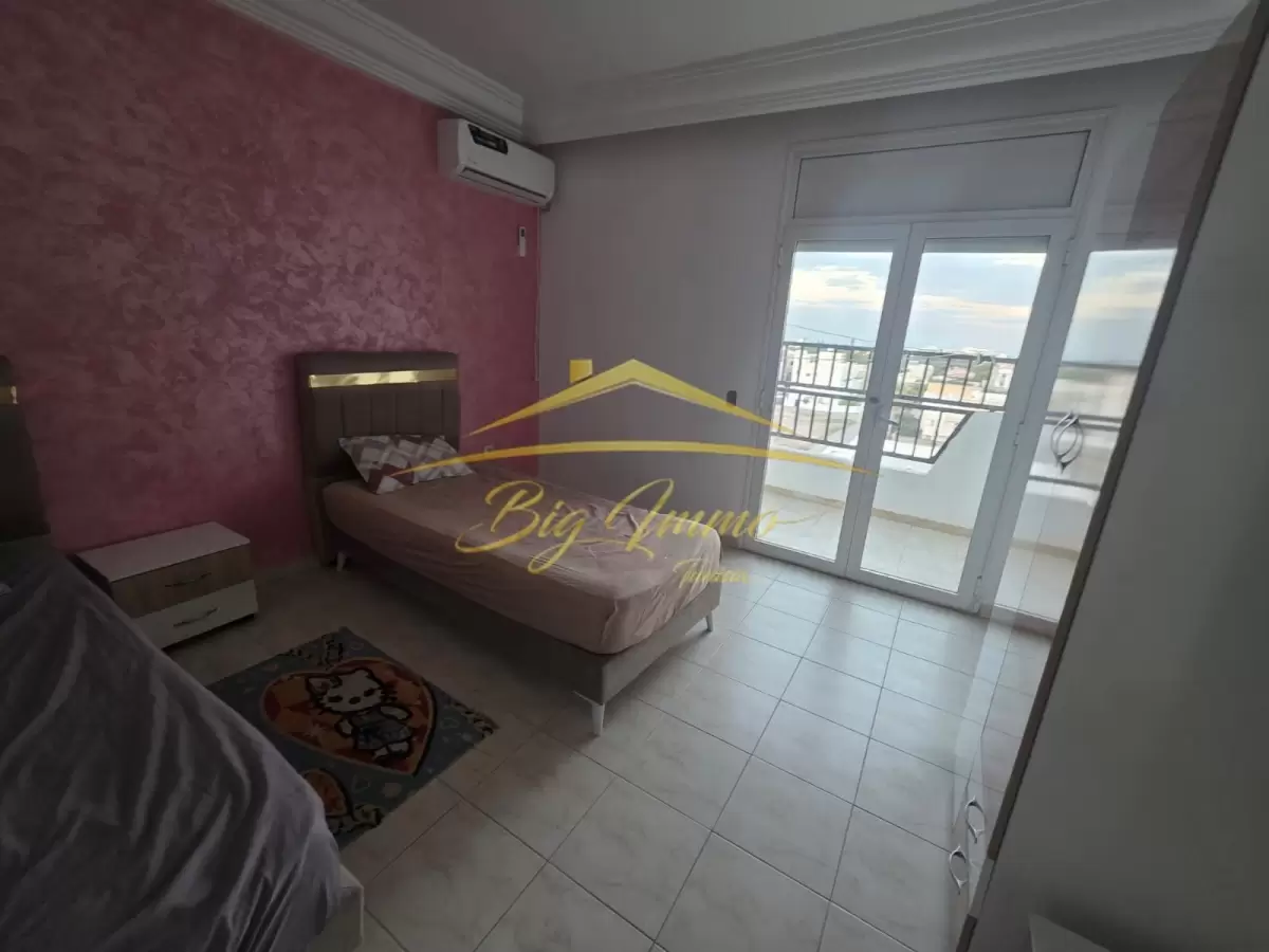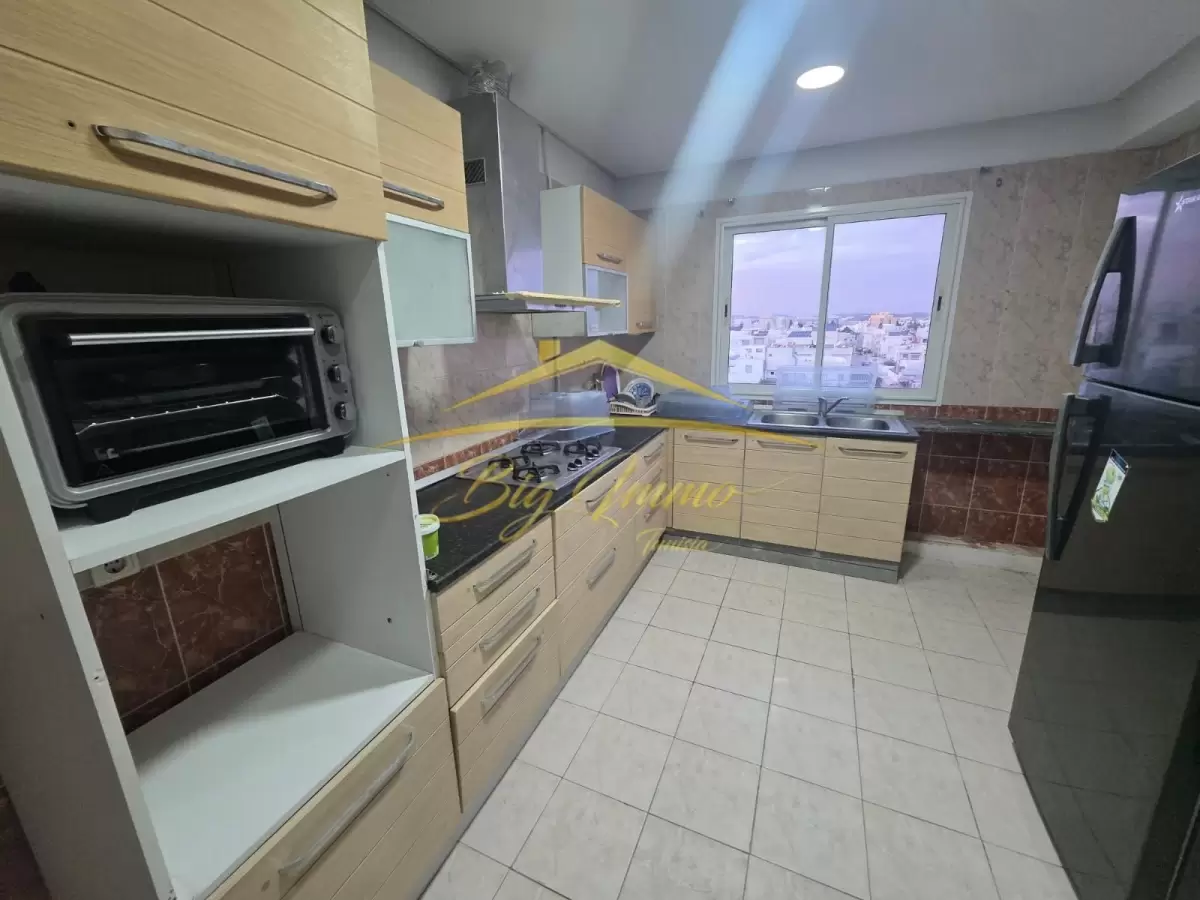 À Louer – Appartement S3 meublé à Khzema Est (Sousse) Nous vous proposons à la location un appartement s+3 meublé spacieux situé au 5ᵉ étage d’une résidence avec ascenseur, dans le secteur recherché de Khzema Est. Composition : Un hall d’entrée avec placard encastré Une cuisine bien équipée avec séchoir Un salon lumineux donnant sur un balcon Trois chambres à coucher avec accès au balcon Une salle de bain avec Cabine de douche Un abri pour voiture