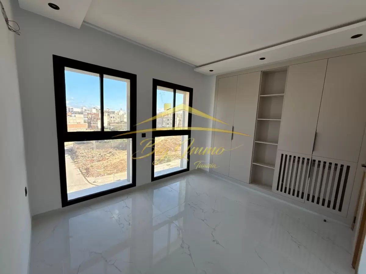 À Vendre – Appartement S2 Neuf à Bouhssina (Haut Standing) Emplacement : Bouhssina, 4ᵉ étage, dans une résidence neuve et sécurisée Appartement jamais habité, tout neuf, offrant des prestations de qualité supérieure. Caractéristiques du bien : Superficie : 133 m², spacieux et bien agencé Cuisine : Entièrement séparée, moderne et fonctionnelle Chambres : 2 grandes chambres, dont une suite avec salle de bain privative (cabine de douche) et dressing Salle de bain : Moderne, équipée d'une cabine de douche, dans la suite Salon : Salon lumineux avec grandes fenêtres et accès à un balcon, offrant une belle vue sur le quartier Balcon : Idéal pour profiter de l'extérieur, petit espace privé pour se détendre Détails supplémentaires : Étage : 4ᵉ étage (idéal pour la vue et la tranquillité) Prix : 426 000 DT Disponibilité immédiate pour emménager ou investir Proximité : Près des commerces, écoles et transports en commun, facilitant la vie quotidienne Opportunité à ne pas manquer, pour un logement familial ou un investissement de qualité avec un potentiel de rentabilité élevé. Pour plus d'informations ou pour organiser une visite, contactez-nous : 258 852 85 230 011 22