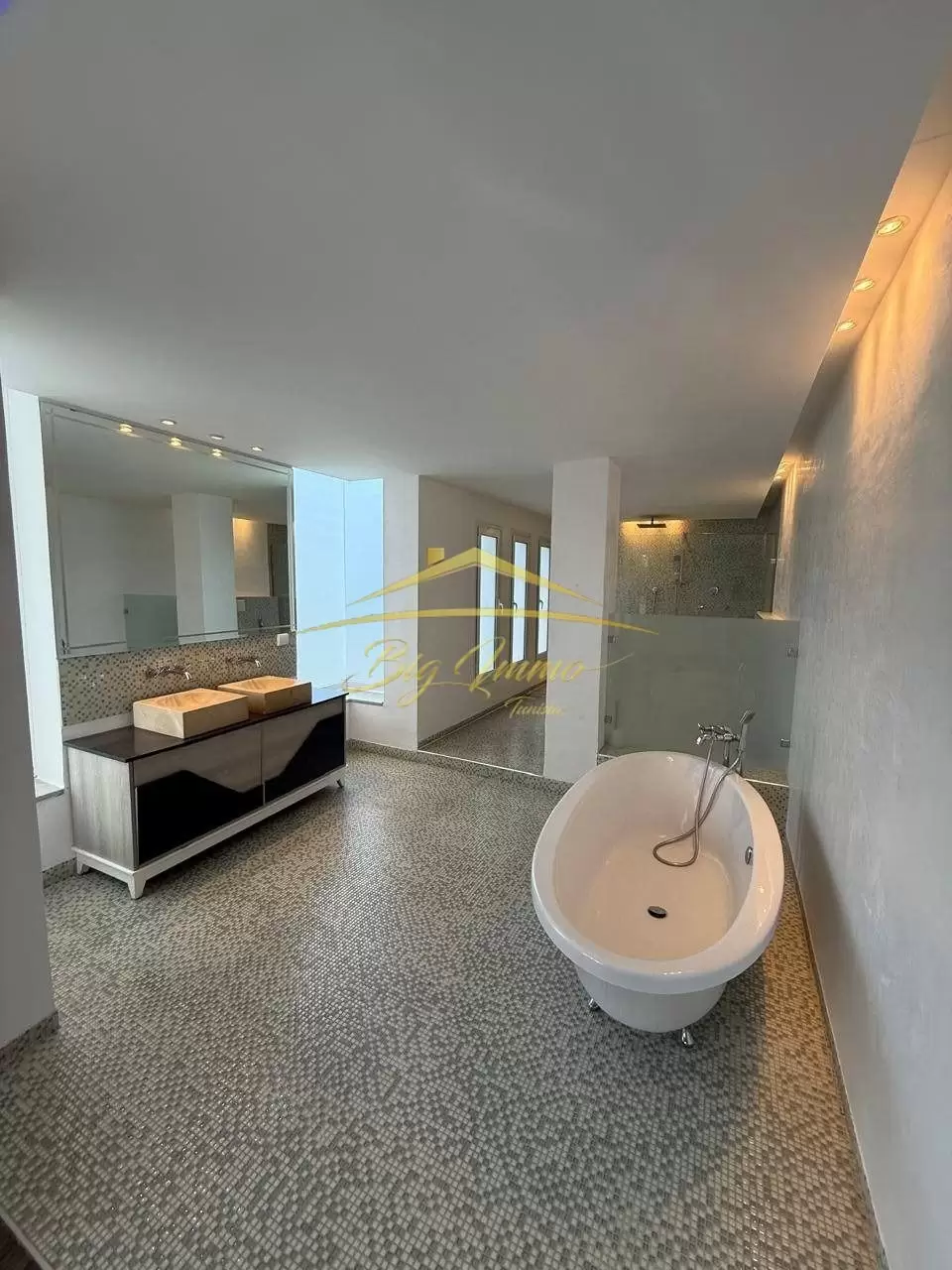 LOCATION / VENTE – Villa spacieuse à Kantaoui Disponible à la location ou à la vente, cette villa située dans un environnement résidentiel calme et prisé séduit par ses espaces élégants et généreux. Elle convient parfaitement à une résidence familiale haut standing ou à un investissement de valeur, bénéficiant d’un emplacement premium à Kantaoui. Composition : Rez-de-chaussée : Salon spacieux et lumineux Cuisine moderne bien équipée avec accès direct au jardin et à la piscine Point d’eau pour invités Chambre d’amis Sous-sol : Salon Cuisine 2 chambres Point d’eau Salle de bain avec baignoire 1er étage : 3 suites 1 chambre à coucher 1 suite avec dressing spacieux 1 chambre avec accès au balcon Prestations : Climatisation Chauffage central Jardin Terrasses Piscine Garage (3 places) Caméras de surveillance Contact pour Visite : Tél. : 25 885 285 - 23 001 122 Agence Immobilière Big Immo Adresse : Avenue Hassan Ben Said, Khzema Ouest, Sousse – Rond-point Siab