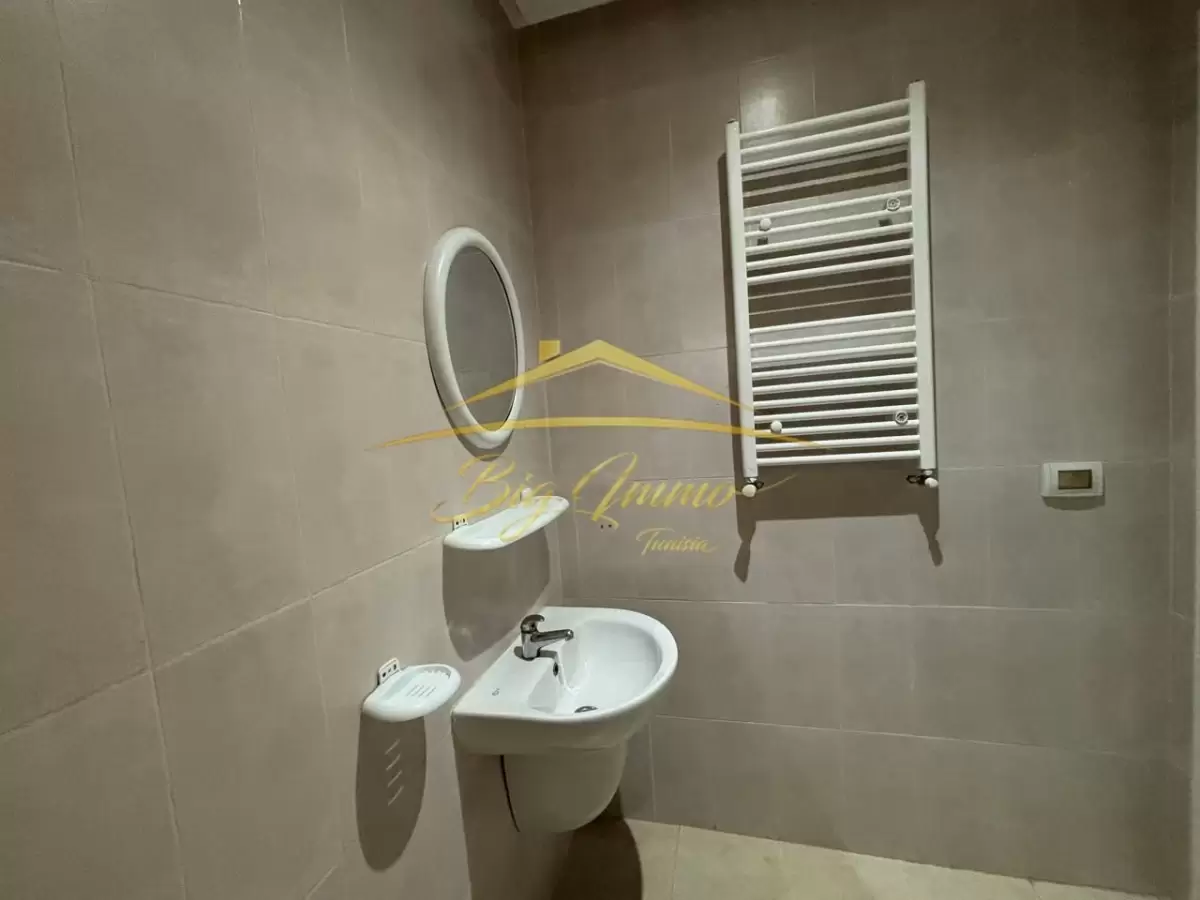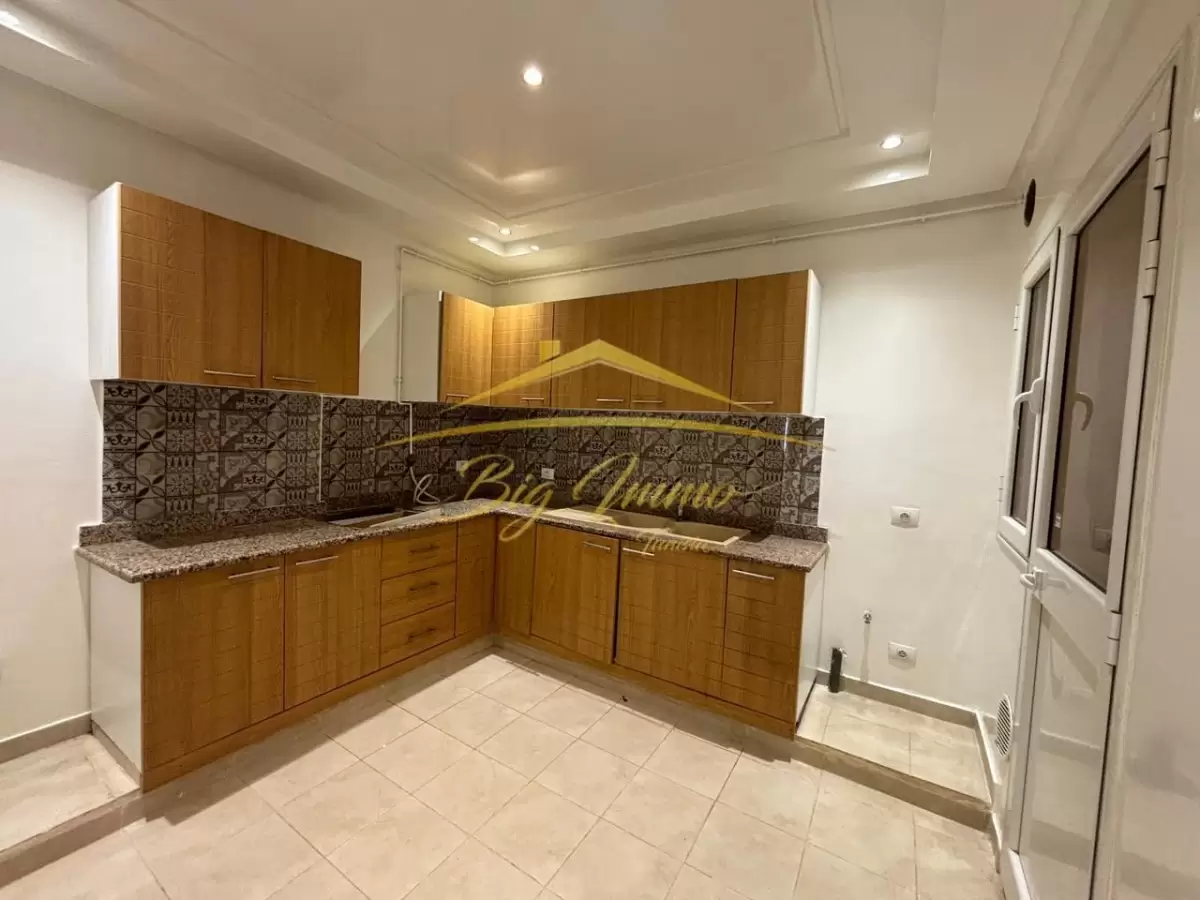 À louer – Petit S2 vide à Khzema Ouest (Sousse) Agence Immobilière Big Immo vous propose un petit appartement S2 non meublé, situé au 2ᵉ étage sans ascenseur, dans un petit immeuble familial à Khzema Ouest. Composition : * Salon lumineux avec accès au balcon * Cuisine avec accès au séchoir * Deux chambres à coucher avec dressings encastrés * Salle de bain équipée d’une cabine de douche * Lavabo indépendant