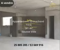 À vendre – Appartement S3 inachevé à Sousse Ville À vendre appartement S3 inachevé, situé au 2ᵉ étage, dans un quartier calme et en plein développement à Sousse Ville. Superficie : Environ 141 m² Composition : Partie jour : Salon spacieux avec accès à un balcon Salle d’eau pour invités Salle de bain Cuisine avec séchoir Partie nuit : Trois chambres à coucher, toutes avec accès au balcon Atouts : Appartement inachevé offrant la possibilité de : – Personnaliser les finitions selon vos goûts – Réduire le coût par rapport à un appartement clé en main – Choisir librement les matériaux et l’aménagement intérieur Idéal pour une habitation familiale ou un projet d’investissement Excellent potentiel de valorisation après achèvement Pour une visite ou plus d’informations : 25 885 285 / 53 669 916 Agence Immobilière BIG IMMO Tunisia