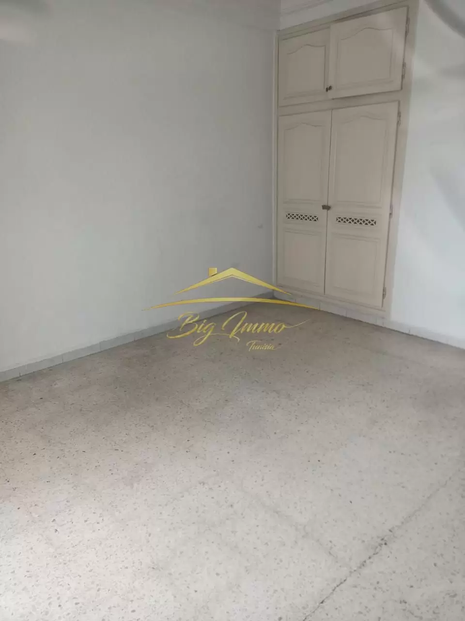 À louer – Appartement S+3 vide – Yasser Arafet, Sousse Nous vous proposons à la location un appartement S+3 non meublé, situé au 2ᵉ étage d’une résidence calme et sécurisée à Yasser Arafet, à Sousse, à proximité immédiate de toutes les commodités (commerces, écoles, transports, cafés, etc.). Composition : Salon spacieux et lumineux 3 chambres à coucher avec dressings Cuisine avec séchoir Salle de bain avec baignoire Point d’eau pour invités Place de parking en sous-sol Idéal pour une famille ou pour un usage résidentiel. Contact – Visite & informations : 25 885 285 / 53 669 916 BIG IMMO Tunisia