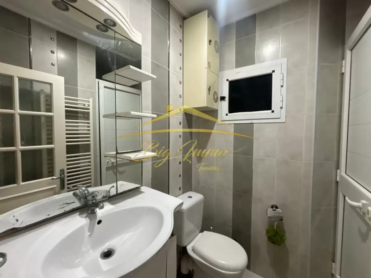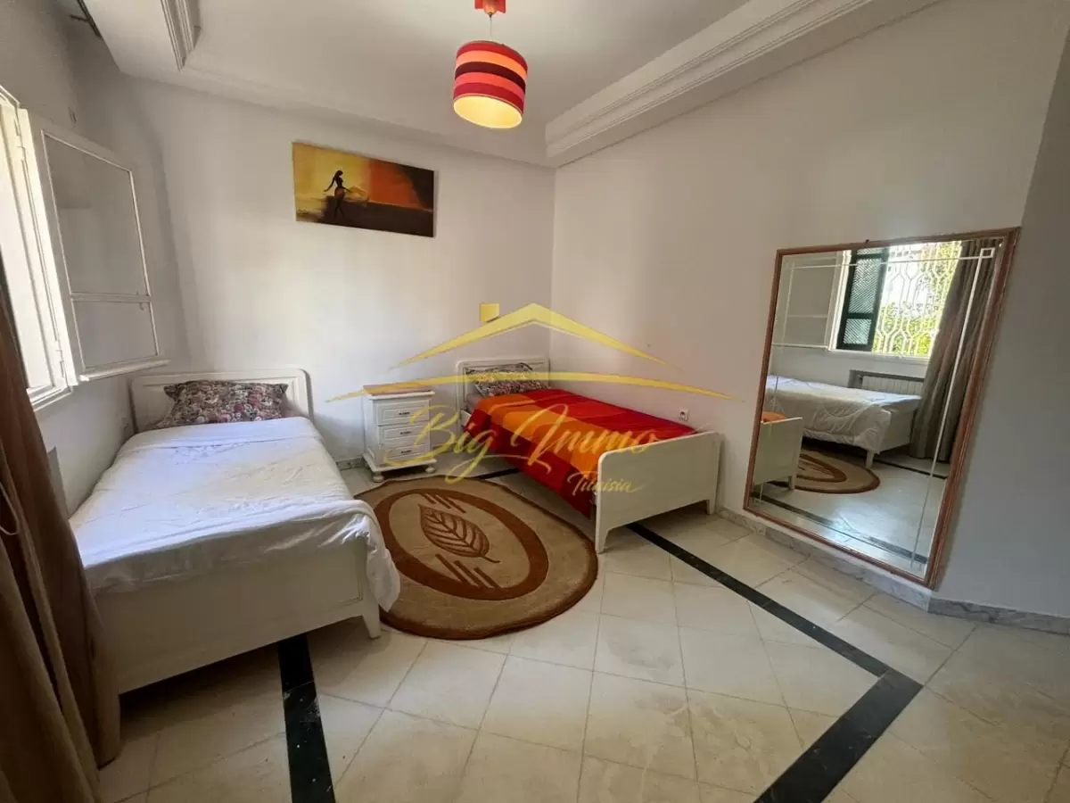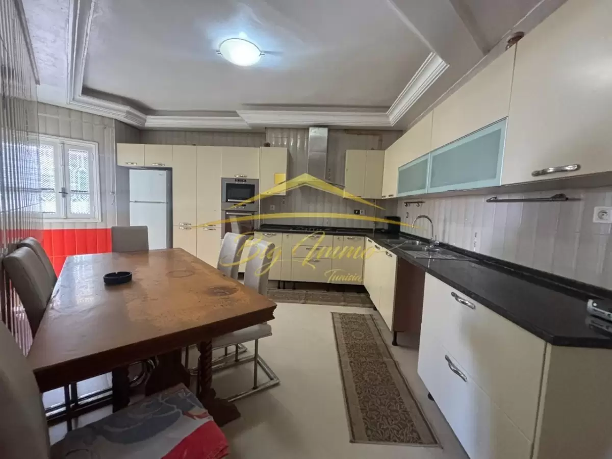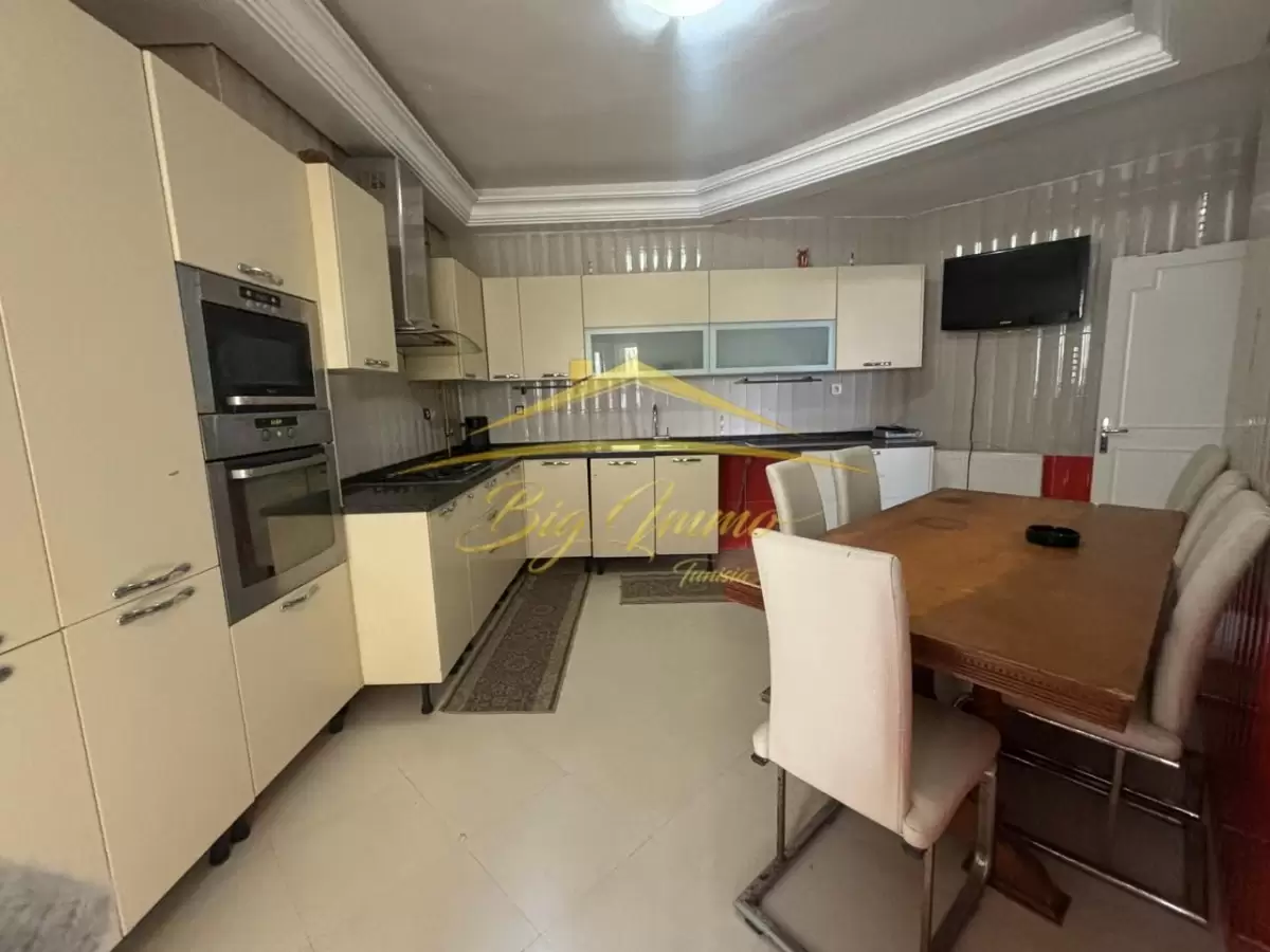 À louer – Appartement S+3 meublé au RDC à Khzema Est Nous vous proposons à la location un appartement S+3 richement meublé, situé au rez-de-chaussée d’une résidence calme, propre et sécurisée, dans un quartier stratégique à proximité immédiate de toutes les commodités (commerces, écoles, transports, cafés, etc.), à Sousse. Composition : ✔ Salon spacieux et confortable ✔ 3 chambres à coucher ✔ Cuisine fonctionnelle entièrement équipée avec séchoir ✔ Salle de bain avec cabine de douche ✔ Point d’eau pour invités Idéal pour une famille ou pour un usage résidentiel confortable. Contact – Visite & informations : 25 885 285 / 53 669 916 Agence Immobilière : BIG IMMO Tunisia