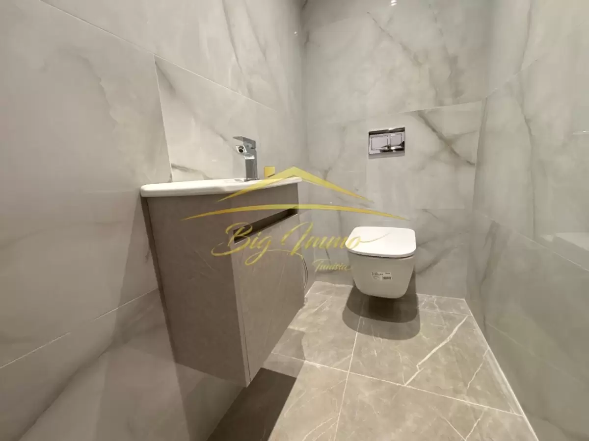 À louer – Appartement S+2 neuf à Sahloul 4 (jamais habité) Nous proposons à la location un appartement S+2 vide, situé au 1er étage avec ascenseur, dans une résidence neuve, sécurisée et implantée dans un quartier calme à Sahloul 4. Composition : Salon spacieux avec accès à une terrasse Deux chambres à coucher avec dressings encastrés Cuisine fonctionnelle équipée Salle de bain avec cabine de douche Place de parking au sous-sol Idéal pour un jeune couple marié. Contact – Visites & informations : 25 885 285 / 53 669 916 Agence Immobilière : BIG IMMO Tunisia